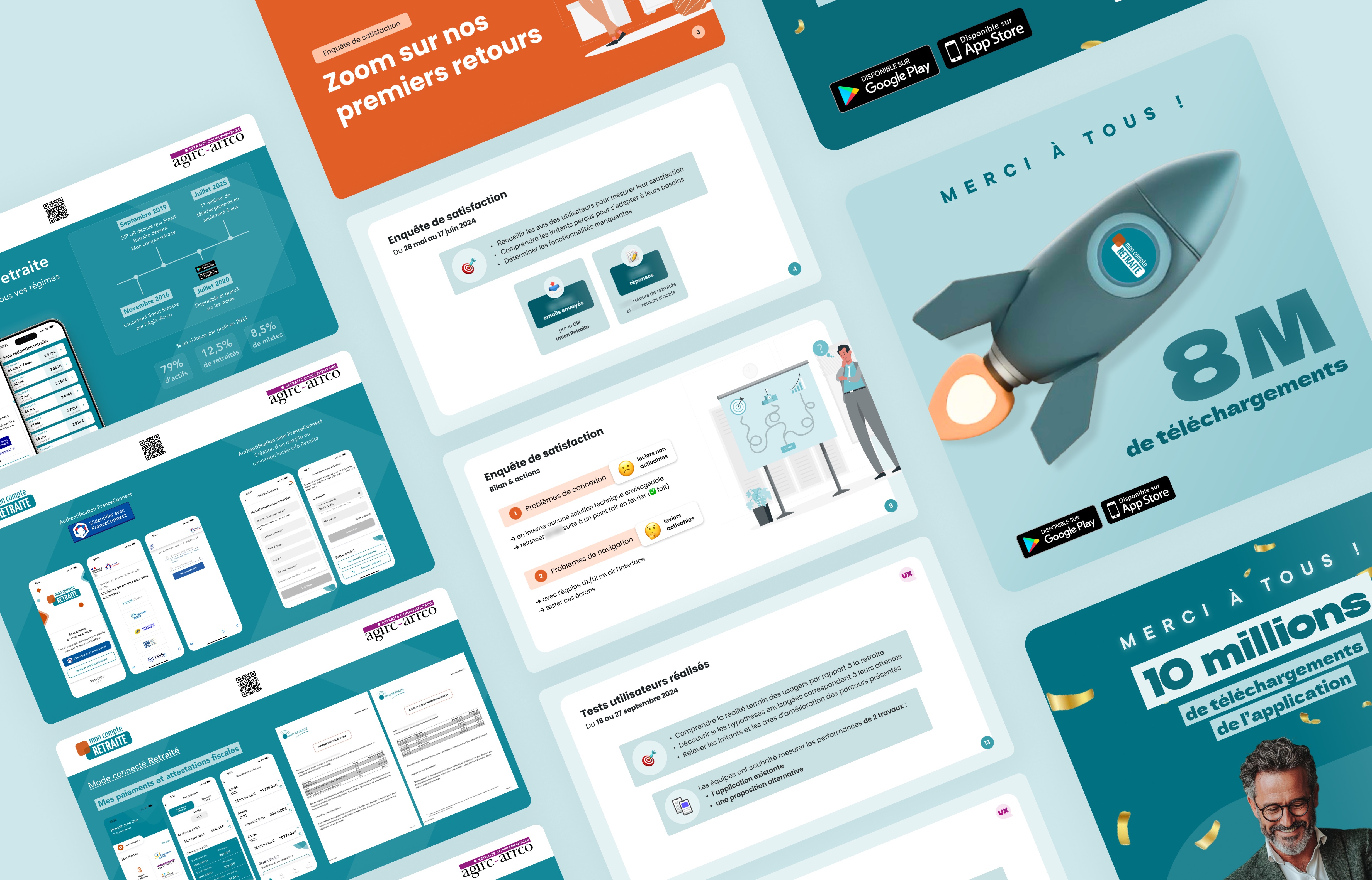 Au sein de l'Agirc-Arrco, j’ai participé au pilotage et à l’évolution de l’application mobile Mon compte retraite, dans un écosystème multi-régimes (Union Retraite, Caisse nationale de l'Assurance retraite, équipes MOE, UX/UI).